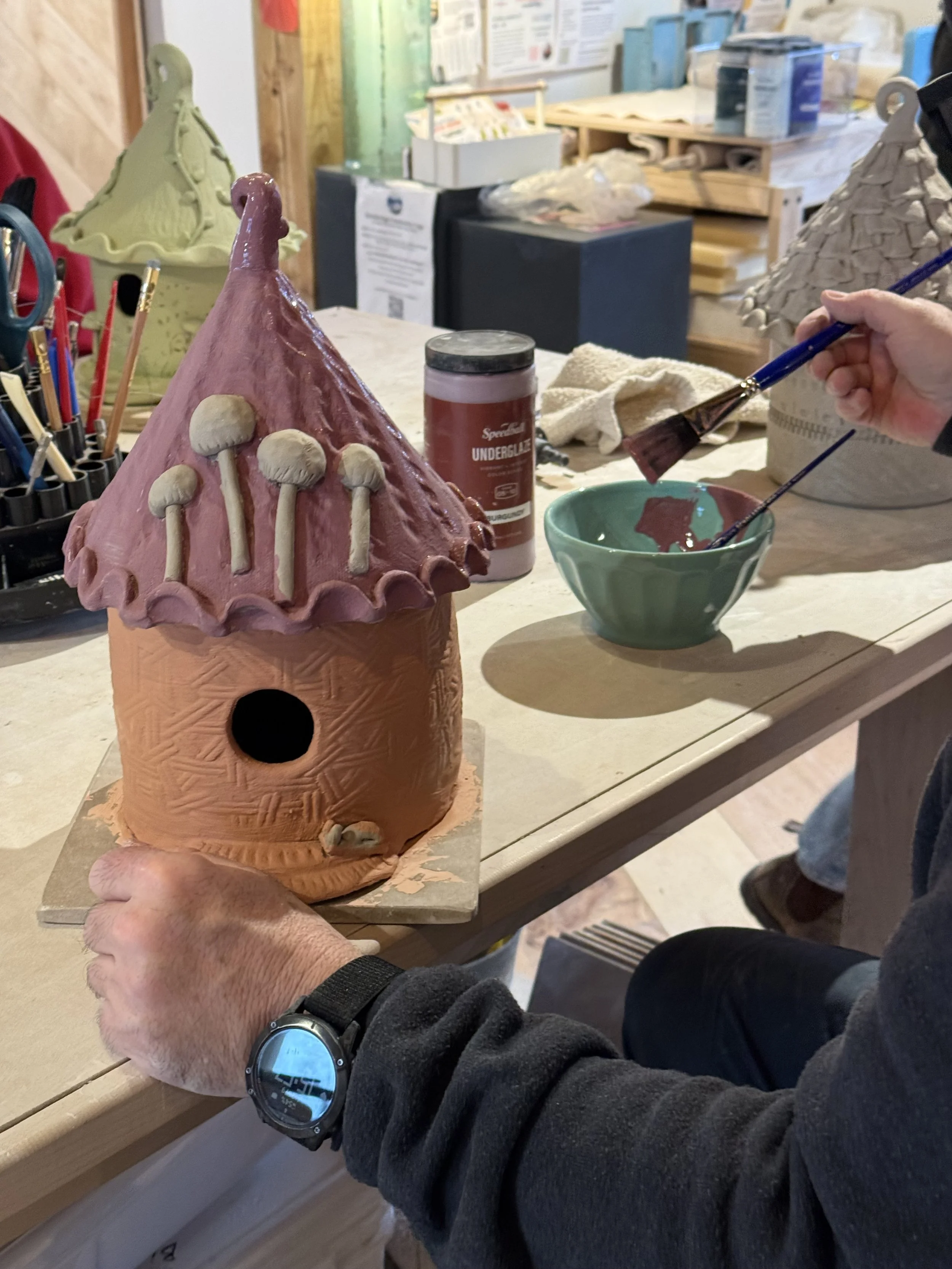 Learn how to build your own handbuilt ceramic birdhouse during this all-day workshop! You will learn techniques to piece together a ceramics birdhouse, and then will decorate it using basic carving, sculpting, and painting methods to make it cozy for our feathered friends.