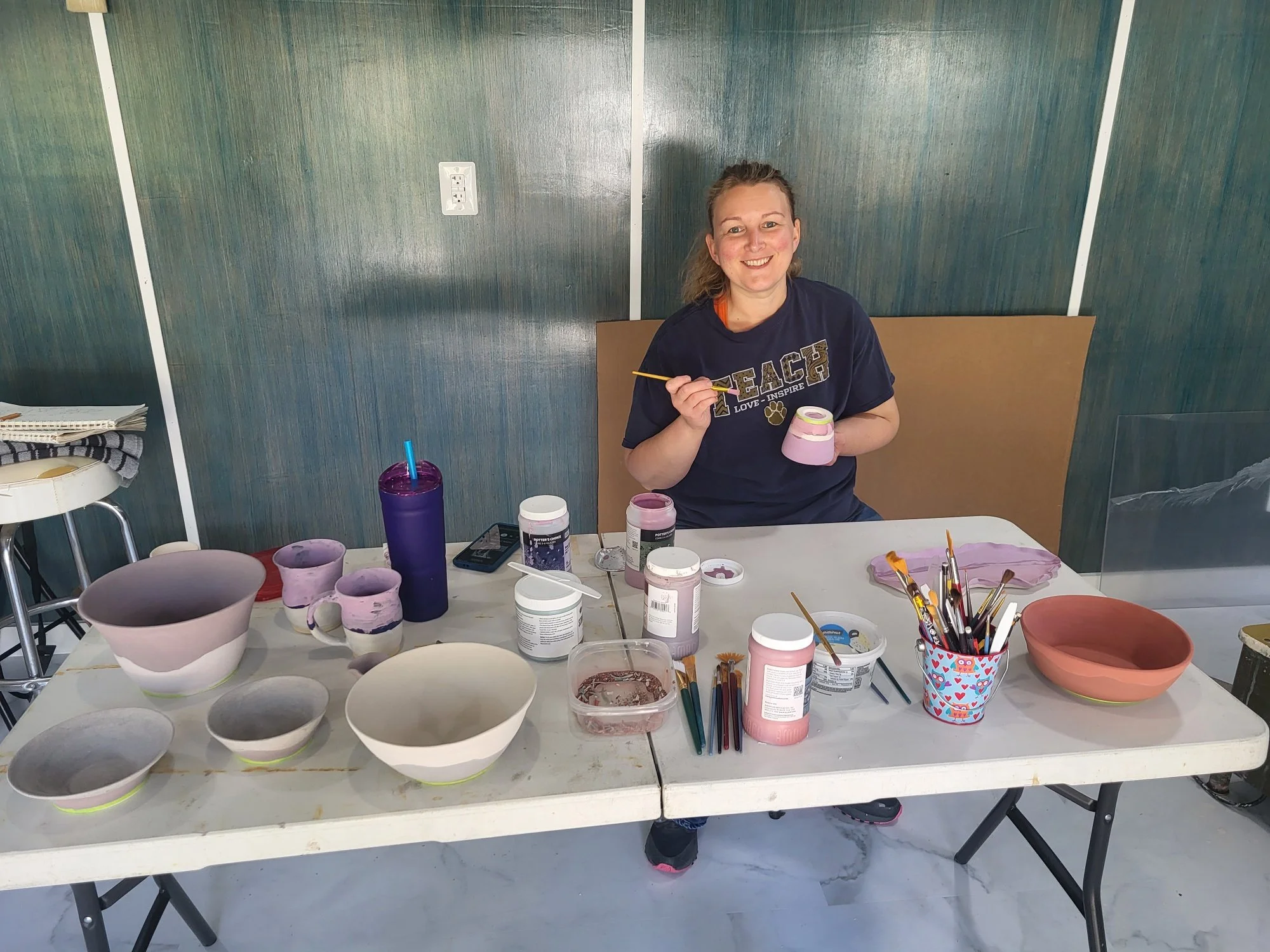 Courtney Jarvis of Mt. Atlas Clayworks is an experienced art educator and artist. She earned her Master of Arts in Liberal Studies with a focus on Visual and Performing Arts from Hollins University in 2014, and her Bachelor of Arts in Art from Seton Hill University in 2004. With over 21 years of teaching experience, she currently teaches elementary art at Fairfield and Natural Bridge Elementary Schools in Rockbridge County, Virginia. Courtney regularly exhibits and sells her pottery at various festivals and events, and has showcased her work in venues such as Roanoke College, the Alleghany Highlands Art and Craft Center, and Smith House Galleries. Passionate about art, she enjoys teaching and creating in a variety of mediums, from drawing to ceramics.