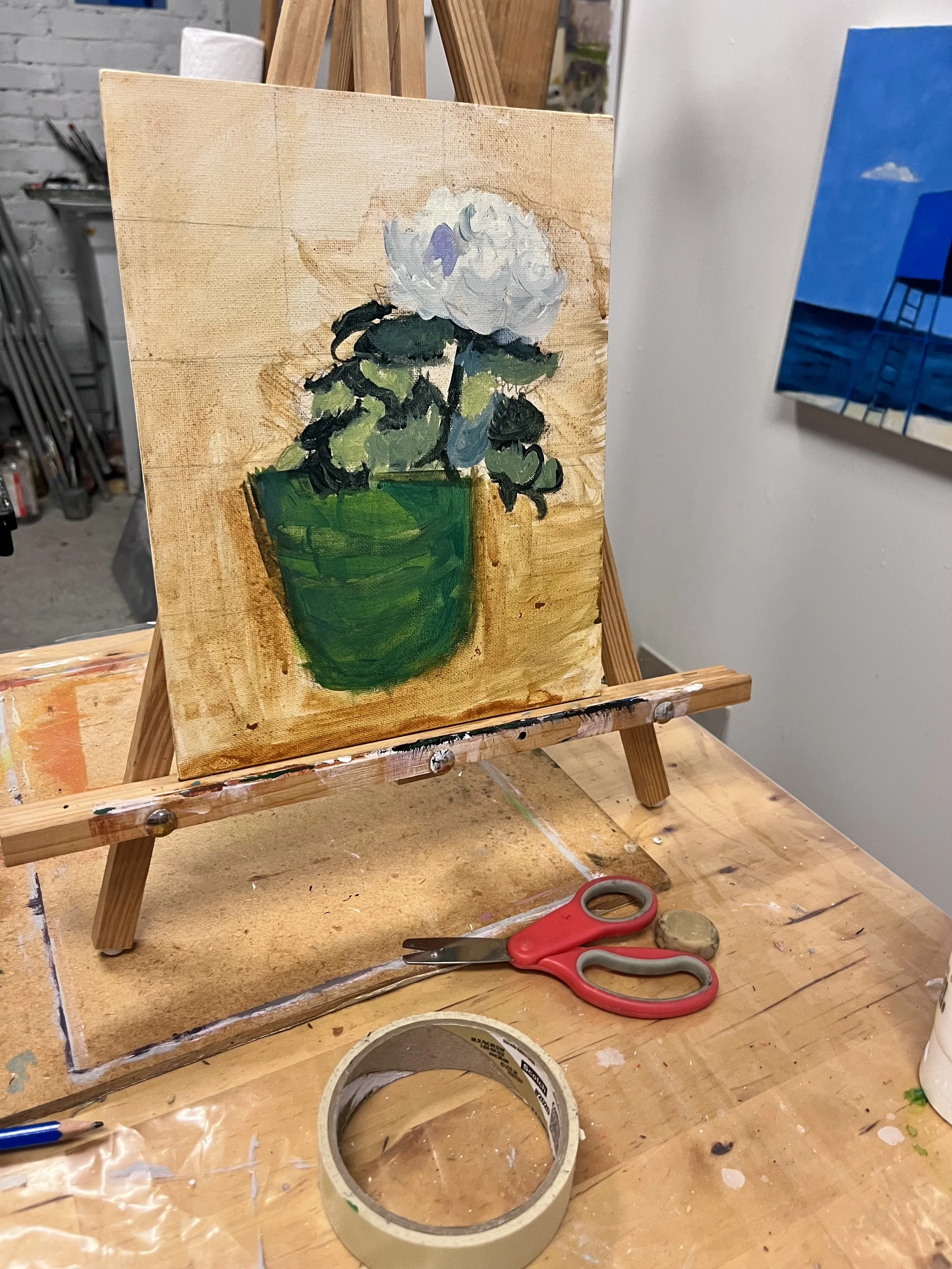 In this beginning oil painting class, participants will learn about color, composition, proportions and oil painting techniques through painting still lifes.